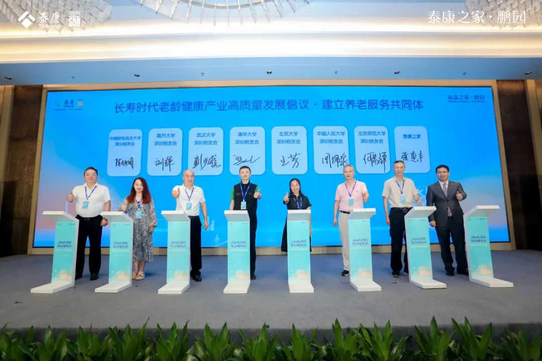 同时,泰康之家·鹏园联合清华大学、北京大学、中国人民大学、武汉大学、北京师范大学、南开大学、中南财经政法大学等各大高校深圳校友会,共同发布《长寿时代老龄健康产业高质量发展倡议》,联合打造长寿时代养老服务共同体,助力积极应对人口老龄化国家战略。