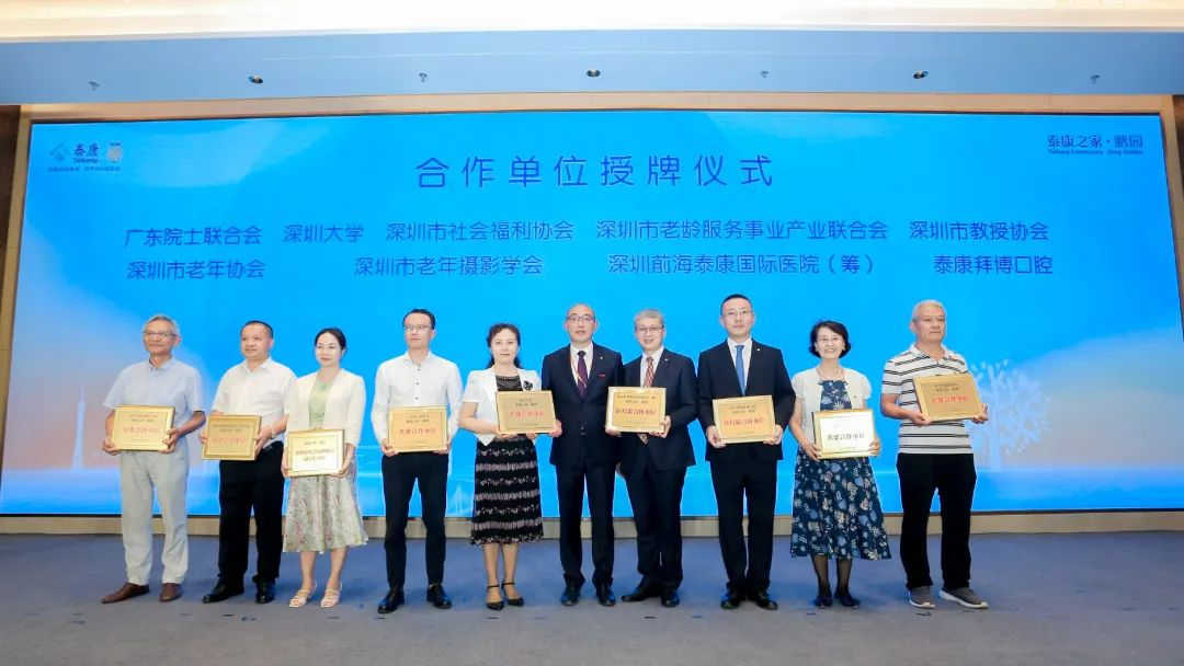 活动现场,中国广核集团、中兴通讯、中国医学科学院阜外医院深圳医院、中国电信深圳分公司、深圳大学总医院、特区建工集团、深圳信息职业技术学院、天威视讯、深圳大学、深圳市社会福利协会、深圳市老龄服务事业产业联合会、深圳市教授协会、深圳市老年协会、深圳市老年摄影学会等单位授牌泰康之家·鹏园为“友好共建单位”,致力让更多长辈实现自己的晚年精彩。