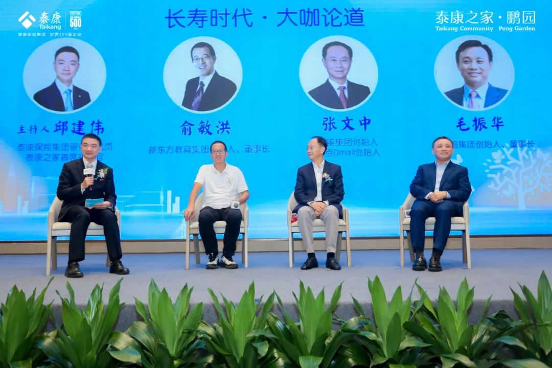 作为本次活动备受期待的大咖论道环节,新东方教育集团创始人、董事长俞敏洪,物美集团创始人、多点Dmall创始人张文中,中诚信集团创始人、董事长毛振华等三位知名企业家,在泰康保险集团管委会成员兼泰康之家首席执行官邱建伟主持下,各自分享了他们对长寿时代的理解和养老规划。