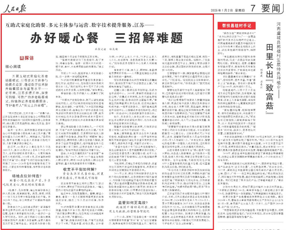 赞!《人民日报》专题推介江苏养老助餐工作!