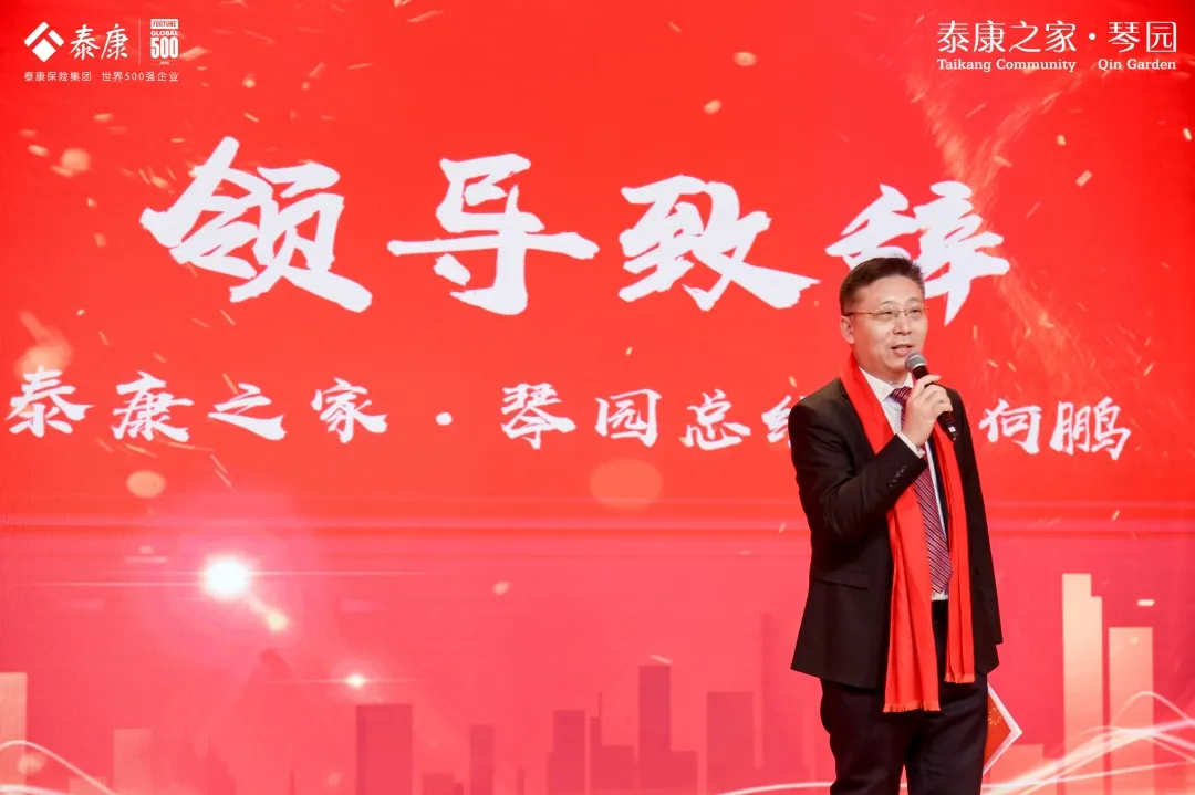 泰康之家·琴园总经理何鹏在新春联欢会上致辞。2024年泰康之家持续探索网络化社区康养中心布局。机构养老、社区养老和居家养老“三位一体”的养联体战略正式成型。截至目前,泰康之家已在全国布局36个核心城市43个项目,24家养老社区已投入运营,服务在住居民超1.5万人。