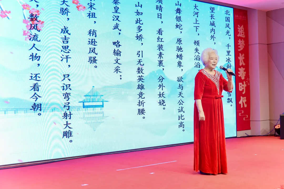 居民周秀清阿姨带来朗诵《沁园春·雪》。