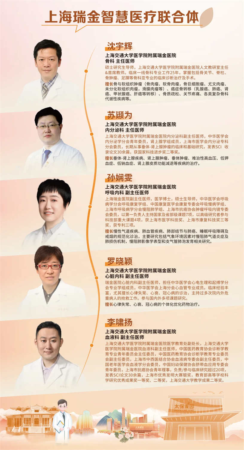 上海瑞金医院各专科、专病骨干医生坐诊,这些专家在各自领域有着深厚的造诣和丰富的临床经验,能够确保患者得到最专业、最权威的诊疗建议。