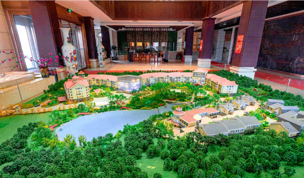 幸福长者汇总建筑面积约4.3万平米,总体以南法风格为基调,由5段式龙型养老公寓、16栋养生度假别墅和1个会馆组成。