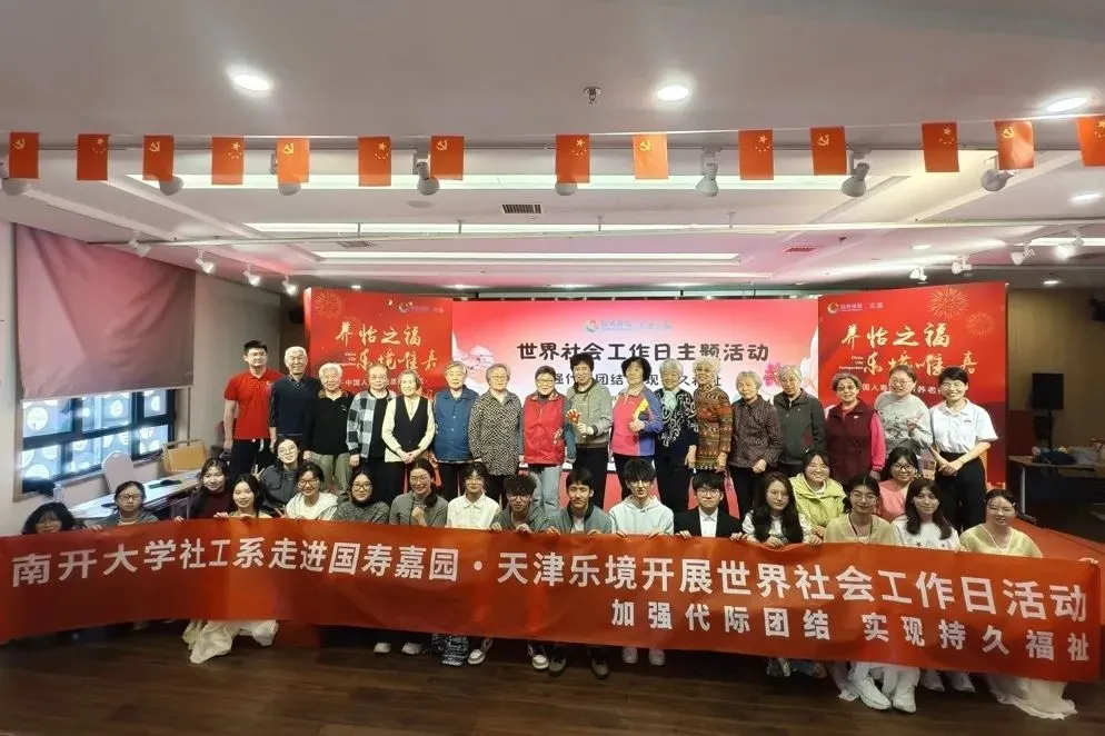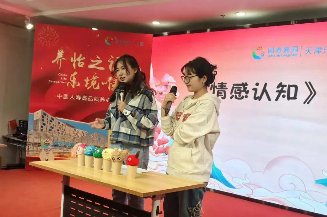 日前,南开大学社会工作与社会政策系师生代表受邀走进国寿嘉园·天津乐境,与社区长者一同开展“加强代际团结 实现持久福祉”主题活动,现场气氛融洽,精彩表演与趣味游戏轮番上演,南开大学社工系同学与长者深入交流、科普情绪认知有关的知识。