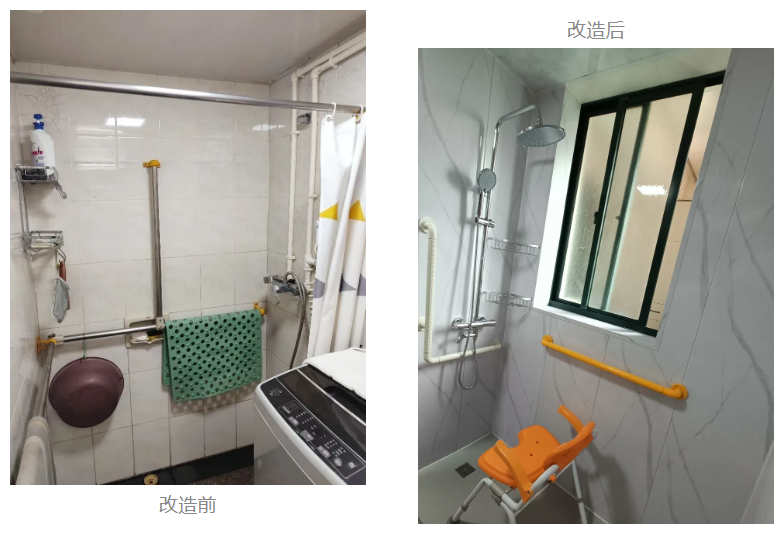 “可不是嘛!以前跨浴缸像翻山,现在这防滑垫、扶手、折叠凳一应俱全,政府还补贴了5000块,我洗澡再不用提心吊胆啦!”