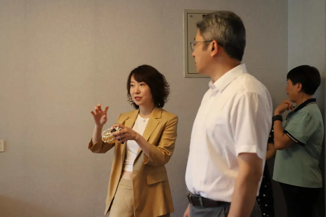 在集团管理层的陪同下,校方参观了中国首家五星级养老服务机构寿山福海石景山院,民政职业大学校方领导在实际运营场景中沉浸式感受“超星准·寿山福海‘五位一体’新中式服务体系”的特色运营模式。随后,集团品牌总监伍汉向校方详细介绍“寿山福海” 品牌自2007年创立以来,历经近二十年发展积淀,在各院区规划建设与运营管理中持续探索,逐步构建并完善 “新中式特色养老服务体系”,实现从品牌初创到国内五星级养老标杆的跨越历程。