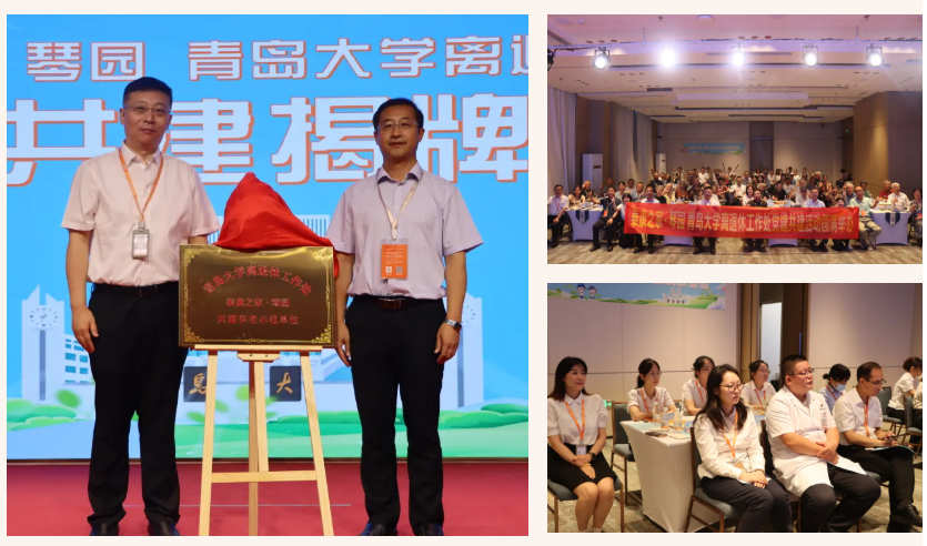 泰康之家·琴园总经理何鹏与青岛大学离退休工作处党委书记、处长宋佐东在活动中致辞并共同为泰康之家·琴园与青岛大学离退休工作处共建享老示范单位揭牌。