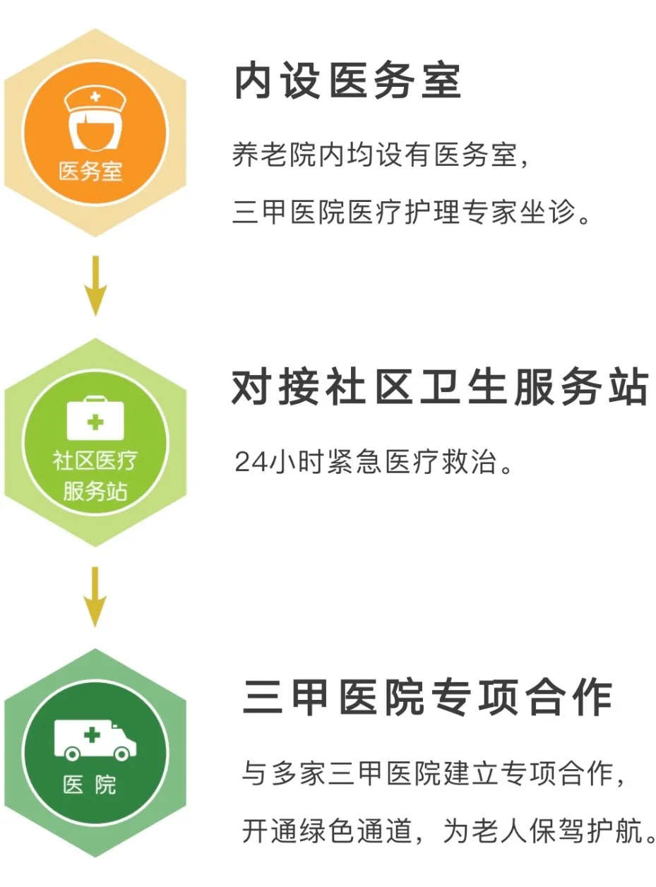 ● 与多家三甲医院建立专项合作,开通绿色通道,为老人保驾护航。