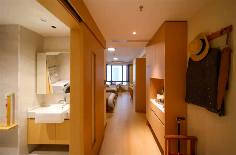 安全方面每间房都经过精心设计,配备了无障碍卫浴设施和室内移动呼叫系统等适老化设计,确保老年人的居住安全与舒适。
