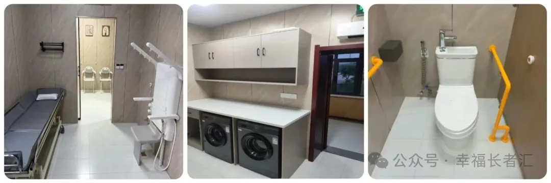 样板间核心围绕提升长者生活便利性与安全性,进行了全面的适老化改造。内部精心规划了洗衣房、卫生间、更衣室及助浴间等功能区,并集成应用多项智能化、适老化设施。