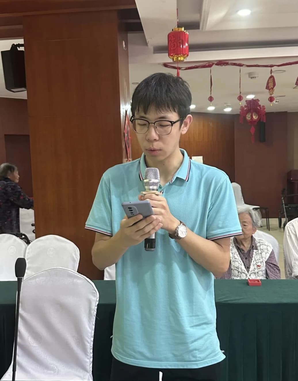 北京和熹会预备党员李佳航代表长者郭蜀辉朗诵“纪念抗日战争暨世界反法西斯80周年”诗一首。