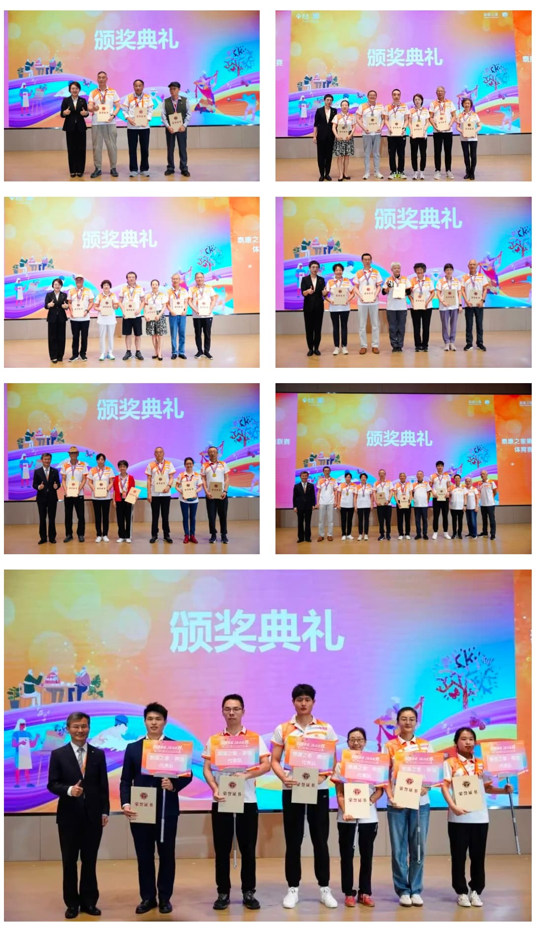 泰康之家北京分公司副总经理兼燕园社区总经理葛明、泰康之家北京分公司助理总经理刘丽、泰康之家北京分公司市场营销部总经理富瑶分别为来自泰康之家·燕园、申园、粤园、蜀园、吴园、桂园、苏园、鹏园、瓯园、豫园、赣园、福园、儒园的33位获奖长辈颁奖。他们中既有台球项目精准击球的 “桌坛能手”、泳池里劈波斩浪的 “水中健将”,也有掼蛋赛场默契配合的 “王牌搭档”,每一位站在台上的长辈,都带着赛事中收获的自信与荣光,让领奖台成为展现 “老有所为” 的闪亮舞台。