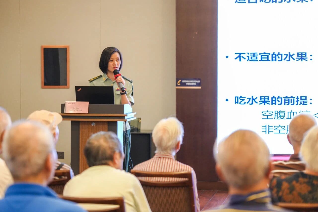 在海月随园嘉树,约三分之一在住长者患有糖尿病。控糖训练营开营前,健康管理中心特别邀请了武警浙江总队医院内分泌科主治医师叶洁老师,来园开展《糖尿病患者的饮食与运动管理》专题讲座,带领叔叔阿姨们加强控糖认知、科学对待疾病。