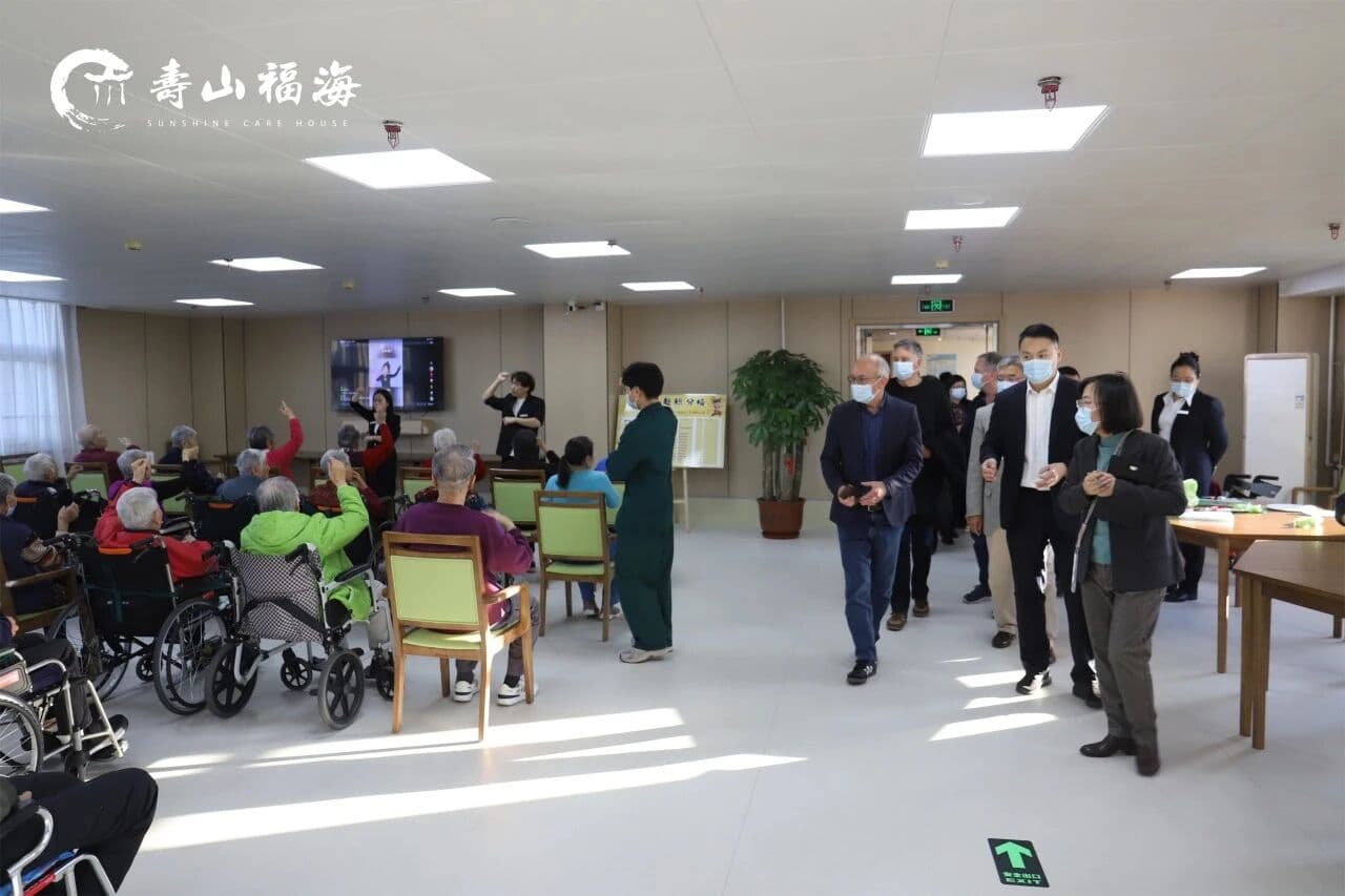 在北京市大兴区寿山福海养老服务中心院长崔渌冰的陪同下,Radius Care集团首席执行官安德鲁・佩斯克特,首席财务官杰里米·埃德蒙兹,独立董事、法律顾问邓肯·库克,以及市政协海外顾问邱明春等一行领导实地考察了中心起居环境、医疗康复设施及公共活动等区域,对中心温馨适老的环境设计、规范细致的运营管理给予了充分肯定。