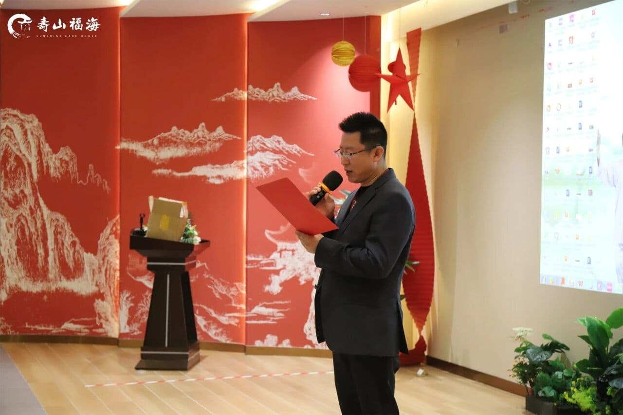 活动伊始,北京市石景山区寿山福海养老服务中心李海峰院长向莅临现场的院区长辈,以及北京市海淀外国语实验学校的师生们致以热烈的欢迎。他表示,此次携手开展交流活动意义深远,不仅打破了传统养老服务的固有边界与场景局限,为长辈们带来了蓬勃的青春朝气与丰富的多元文化新体验,更以教育赋能的创新形式,为养老机构注入了可持续发展的新动能,借助语言教学、特色手工、才艺展示等丰富多元的互动形式,搭建起跨越代际的沟通桥梁,让长辈们浸润在青春活力之中。