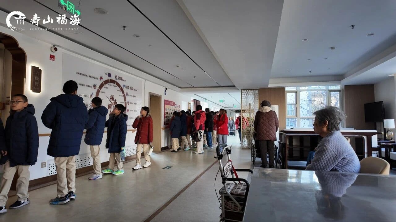 11月18日,北京市海淀外国语实验学校小学多语种班近50名学子与北京市石景山区寿山福海养老服务中心携手,以“青春暖夕阳,文化连心桥”主题开展志愿研学暨校企文化交流活动。作为双方探索校企协同育人的重要实践,此次活动不仅为院区长辈送去温情陪伴,更搭建起代际双向赋能的沟通桥梁,有力地推动了学校实践教学与养老服务领域的深度融合。