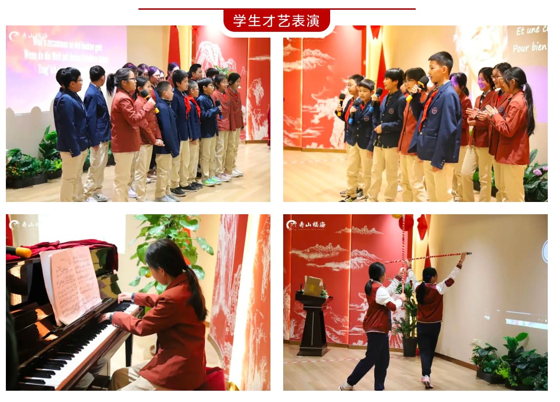 才艺展演环节精彩纷呈,同学们化身 “多语种文化小使者”,发挥他们都会一门小语种的特长,给院区长辈们带来了一场“与众不同”的跨文化体验。同学们献上了德语歌曲《The Best of Us》、法语歌曲《Cool》《Les Sardines(沙丁鱼)》等合唱曲目,旋律时而明快激昂,时而灵动俏皮。钢琴独奏《彩云追月》悠扬婉转、引人入胜,京剧《霸王别姬》选段则一招一式韵味十足。整场演出既有时尚鲜活的国际元素,又不失典雅厚重的中华底蕴,悠扬歌声与精彩演绎跨越语言隔阂,赢得长辈们阵阵的热烈掌声。