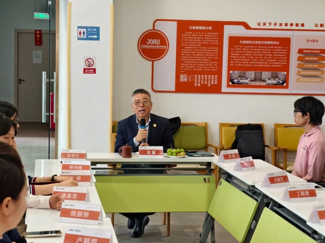 2025年11月28日,一场以“聚焦银发市场,畅想广州九如社,共创九如未来”为主题的青创座谈会在九如城乐从综合为老服务中心举行。九如城集团董事长谈义良及十余名九如城广州城市青创学员参与本次活动。座谈会围绕银发市场机遇、广州九如社发展展开深入交流,让青春智慧为九如未来注入更多活力。