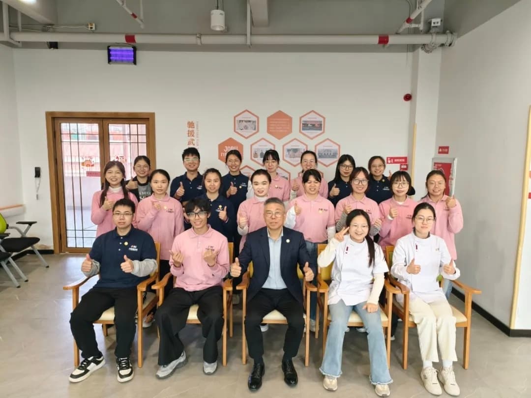 座谈会尾声,谈义良董事长作总结赋能讲话。他首先对学员们关于九如社未来发展的构想给予肯定,随后分享了自身对九如城、九如家和九如社三大业务板块的理解与实践视角,并结合多个城市的优秀案例展开具体阐释。最后,董事长分享了集团“十年九如城、十年九如家、十年九如人”的长远发展战略,激励全体学员以青春之力勇担时代责任,务实开拓、笃行实干,争做养老行业的先行者与引领者。
