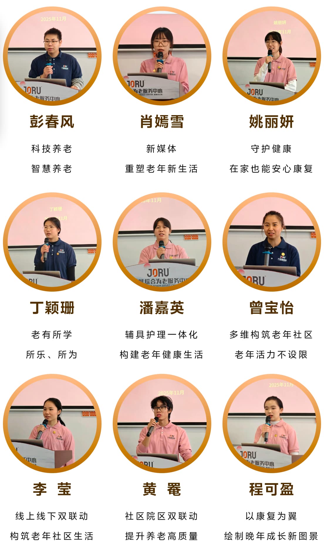 会议伊始,主持人引导学员们依次上台分享观点,多维度剖析广州养老新需求,结合一线工作收集的长者及家属建议,从基层实践、行政支持、财务保障、服务创新到客户对接等方面,为广州九如社发展与银发市场开拓贡献青春智慧。