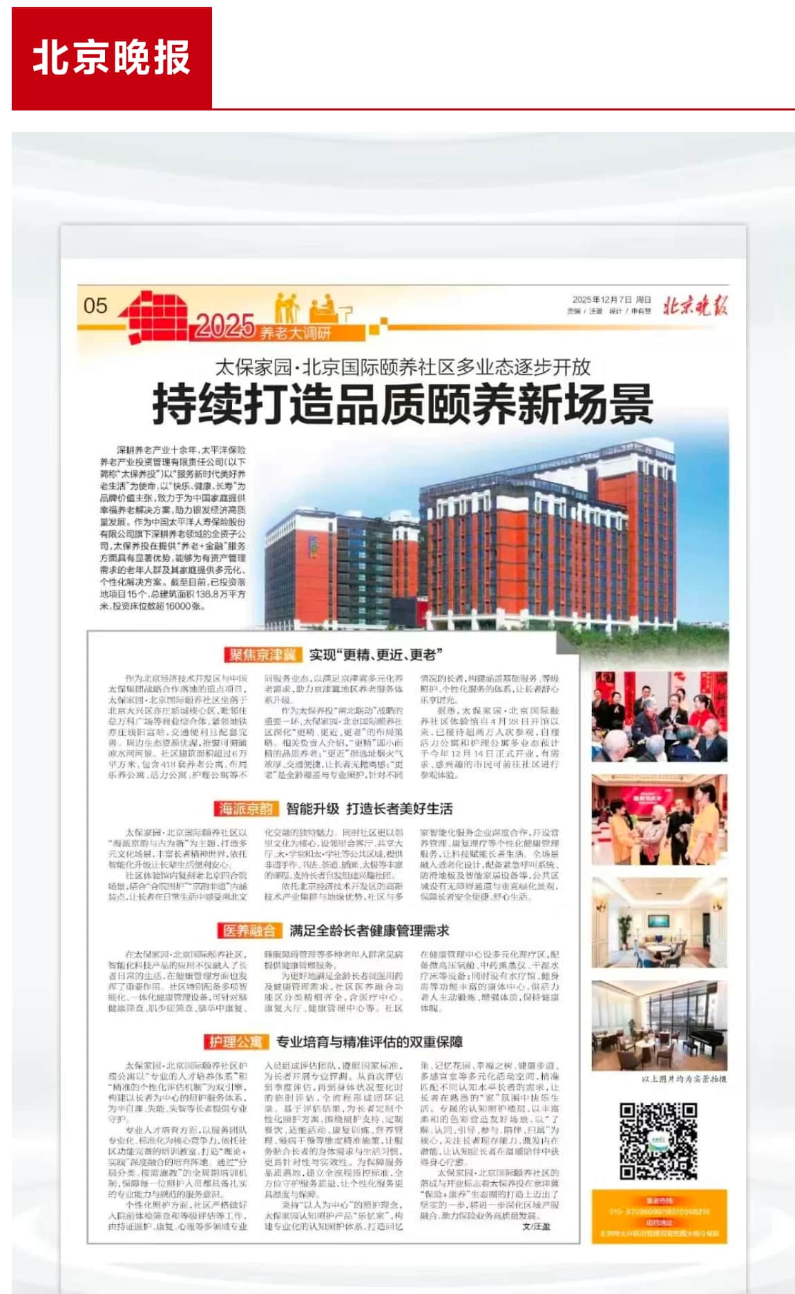 北京晚报报道| 太保家园·北京国际颐养社区多业态逐步开放 持续打造品质颐养新场景