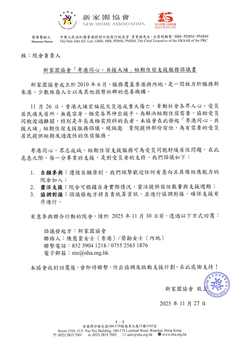 近日香港大埔火灾牵动人心,受灾居民尤其是长者的短期安置急需社会支援。
