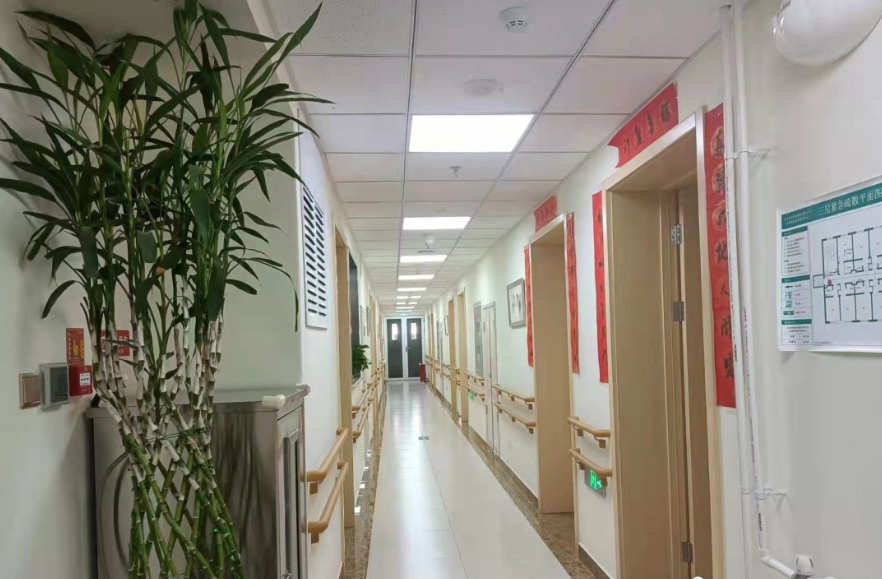 北京市东城区龙潭兆如老年养护中心建筑面积1088㎡。一楼为公共活动区域,设有医务室、VIP餐厅、多功能厅、中央厨房、社区助浴间等功能区域。二三楼共设有22个房间。四楼为楼顶绿色花园和晾晒区。