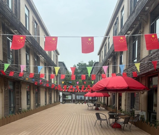 悦鑫养老以“敬老如父母,真情似儿女”为理念,为入住长者提供优质化的服务,让老人的晚年生活更加丰富多彩。悦鑫养老总占地约13000平米,建筑面积7200平米,现有养老床位400余张,园区大门对面是小红门鸿博公园(占地约80万平方米),院区周边多为绿化树植,含大量的负氧离子,适合长者疗养及康复。院内设施包含:台球桌,乒乓球桌,钢琴,多功能演艺厅,书画室,图书室,艾灸室等。