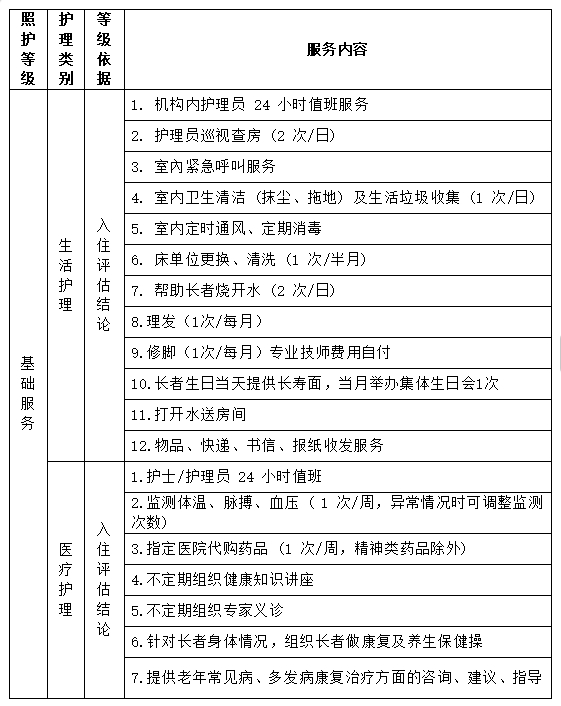 照护等级服务内容 (基础服务)