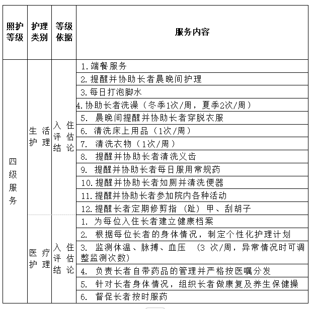 照护等级服务内容 (四级服务)