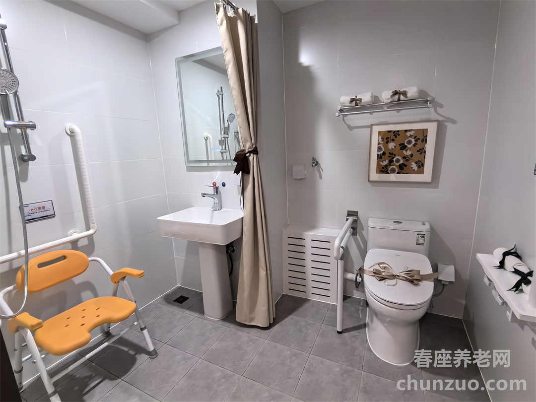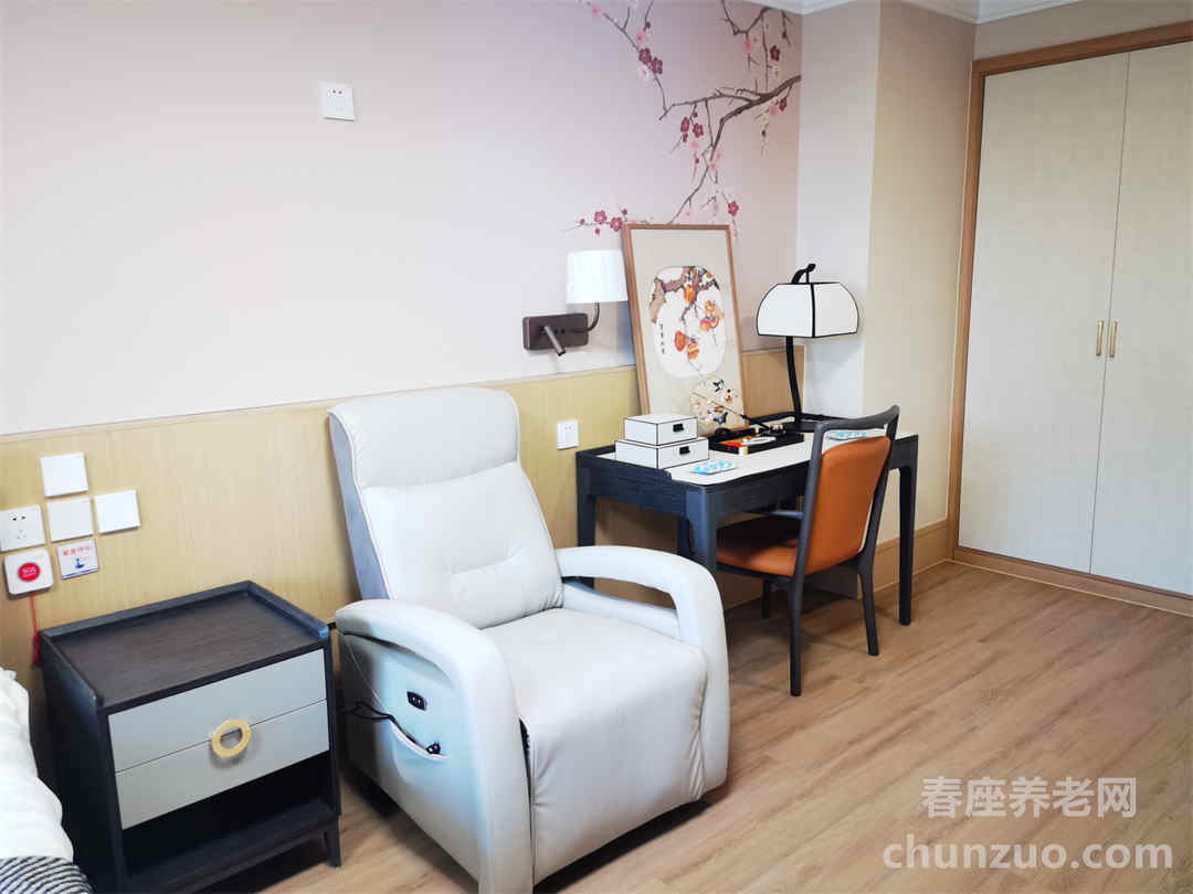 长者房间内设有网络电视、无线WIFI、空调、床头柜、衣柜、净水设备、呼叫系统、独立卫生间、独立淋浴间等设备设施,并设马桶起身扶手、花洒洗浴扶手、防滑措施等适老化设施。