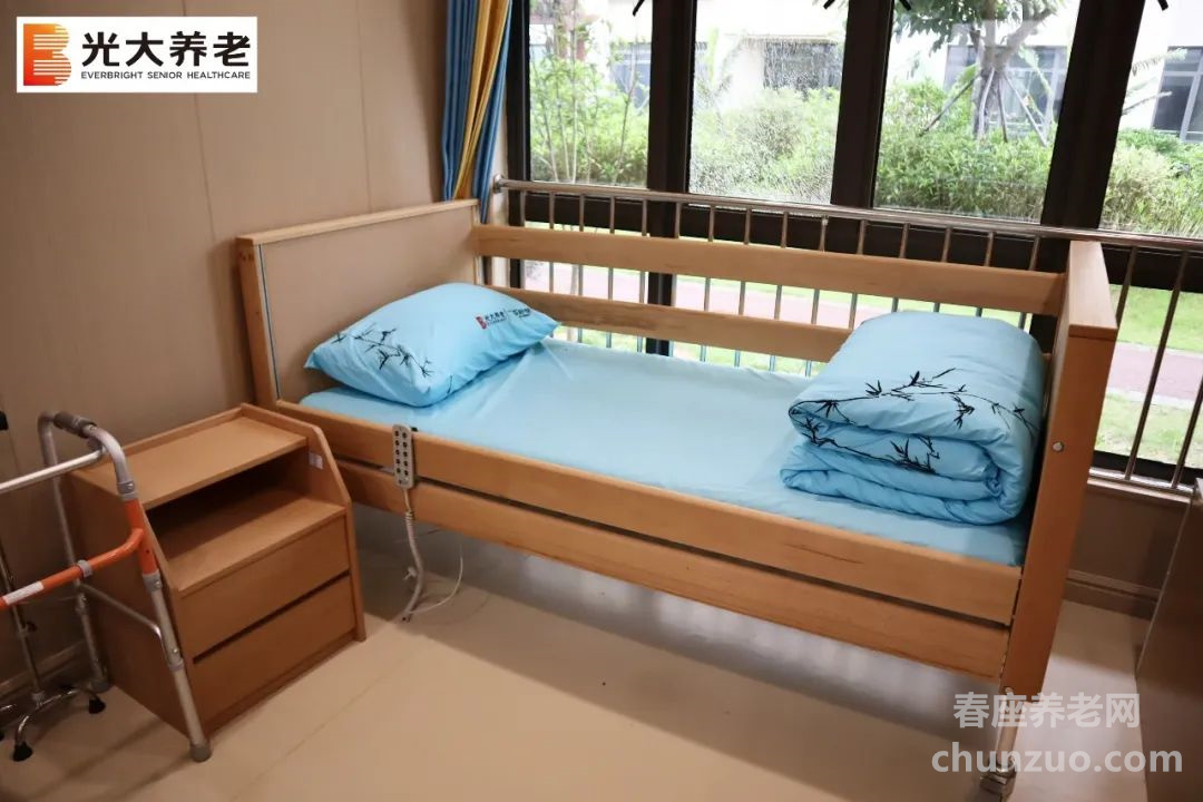 护理型长者的房间配备了全电动护理床,着重照护功能,空间动线流畅无障碍,照护动作可施展,方便护理人员随时查看长者情况。
