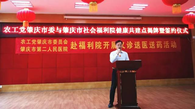 市政协副主席、农工党肇庆市委主委张明,副主委杨志、高永宏,市第二人民医院副院长孙建新、端州区民政局主任科员卢瑞权、肇庆市社会福利院院长罗瑞武等领导出席此次活动。仪式由杨志主持。