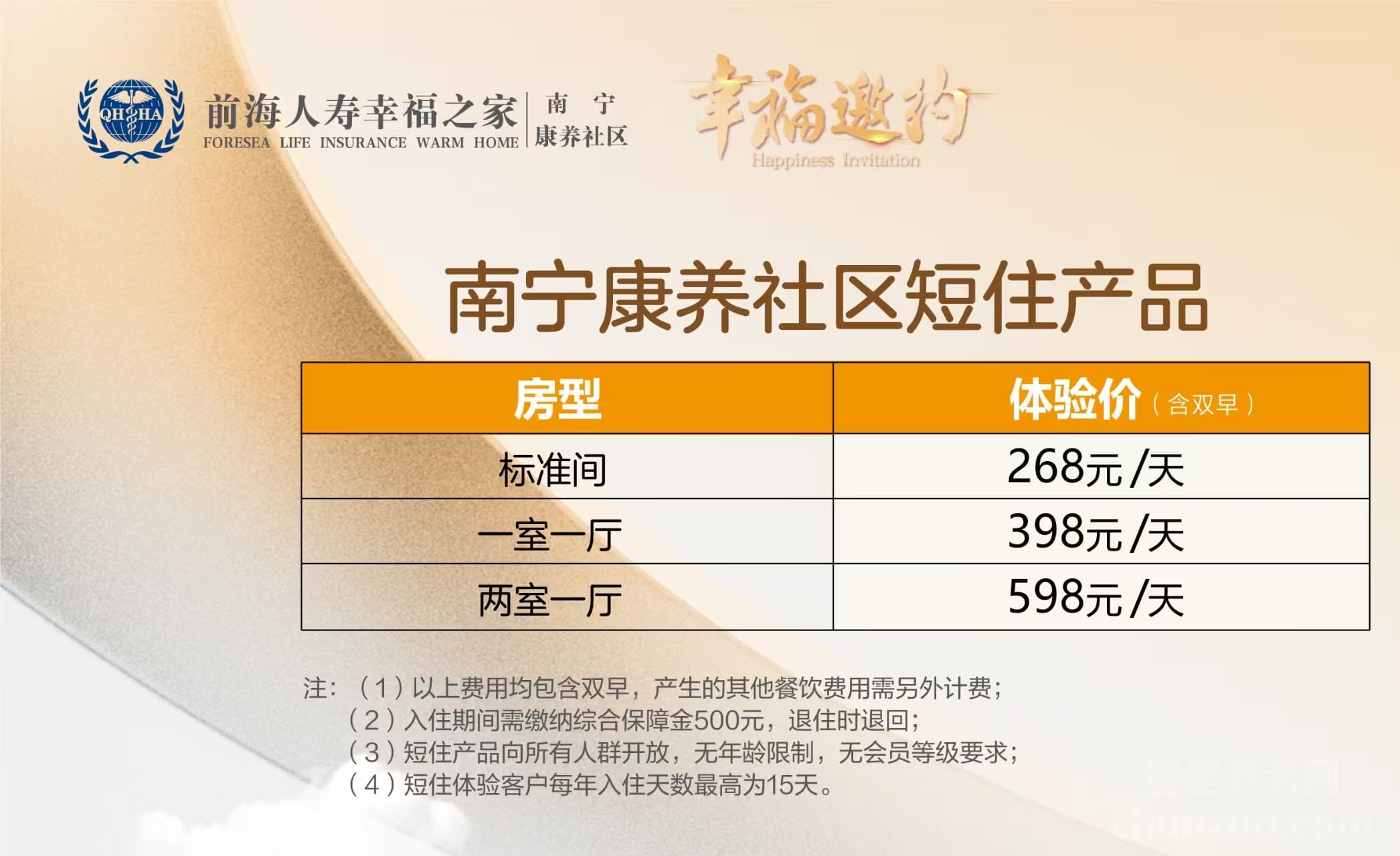 前海人寿幸福之家南宁康养社区的价格/收费/入住须知
