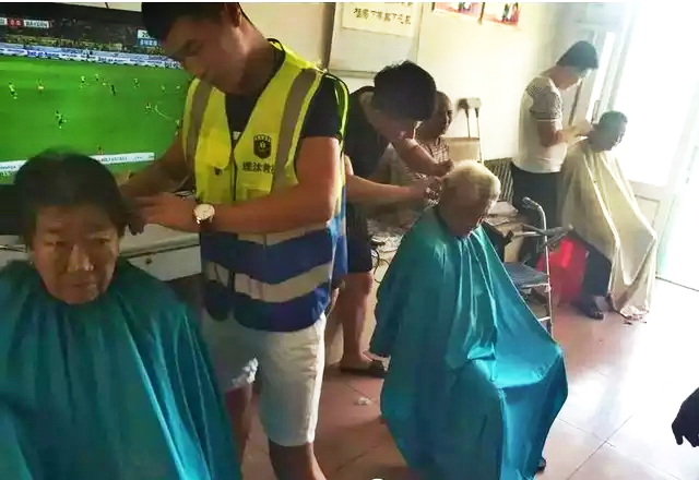 2016年8月23日早晨7点多钟,昌黎手拉手爱心救援大队携同建军批发部、大江鲜菜店、华丽名烟名酒三个爱心商家带着浓浓的爱心来到了虹桥心慈老年公寓,看望这里的70多位老人。他们给老人带来了水果、点心、蔬菜,肉类等物品,队员们来到这里,给老人理发,剪指甲,打扫卫生,把洗干净的水果拿给老人吃。让老人享受到了儿女般的关爱。