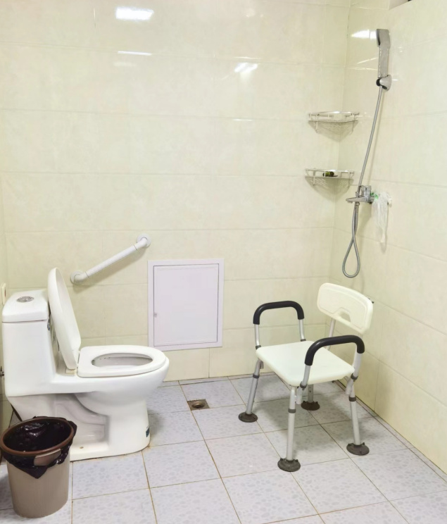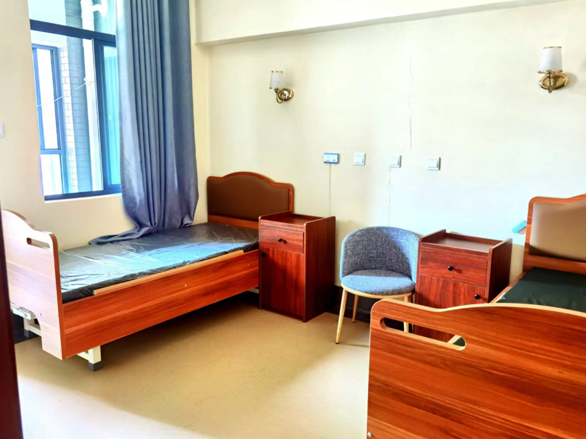 4、老人房间设施,护理床、呼叫器、床头灯、电视、储物柜、卫生间、热水器、书桌等。